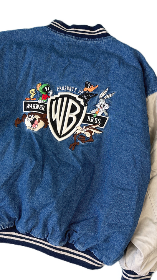 Warner Bros Vintage Denim Bomber Jacket - L